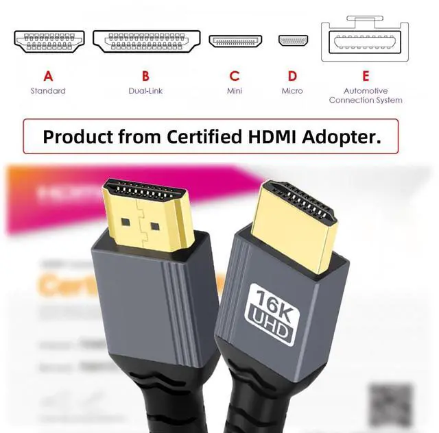 High Speed: allows for unrestricted video in 16K , 8K (UHD) 1440p (QHD) and 1080p (HD). Enjoy unparalleled videoquality, crisp and accurate sound, and buffer-free ethernet connection with these HDMI cables. 16K HDMI cable 2.2 supports 16K@60Hz with DSC, 10K@60Hz, 8K@120Hz, 4K@240/165/144Hz, 2K@240/165/120Hz.