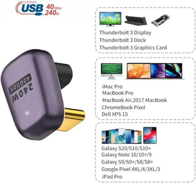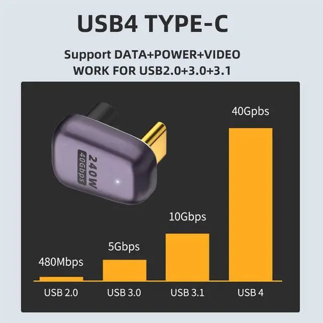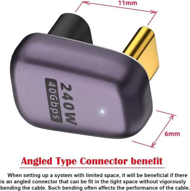 Reversible plug orientation Cable direction. Support 40Gbps data transfer rating.