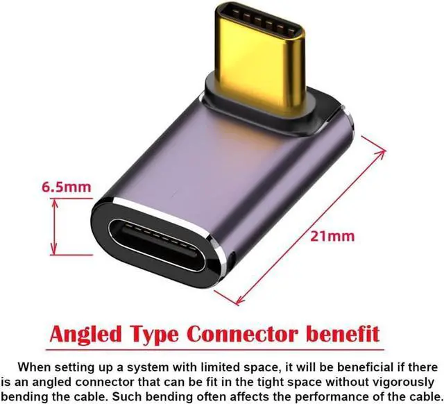 The angled type Allowing you to connect it to a female port, even if space around the port is limited.