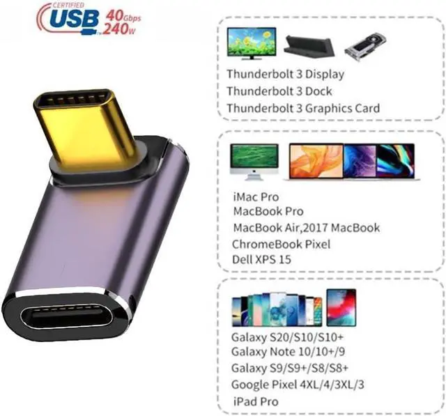 Reversible plug orientation Cable direction. Support 40Gbps data transfer rating.