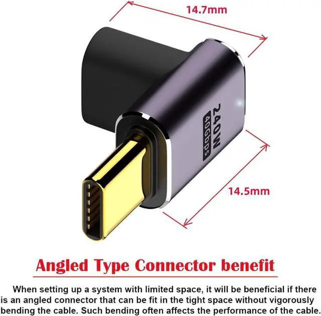 The angled type Allowing you to connect it to a female port, even if space around the port is limited.