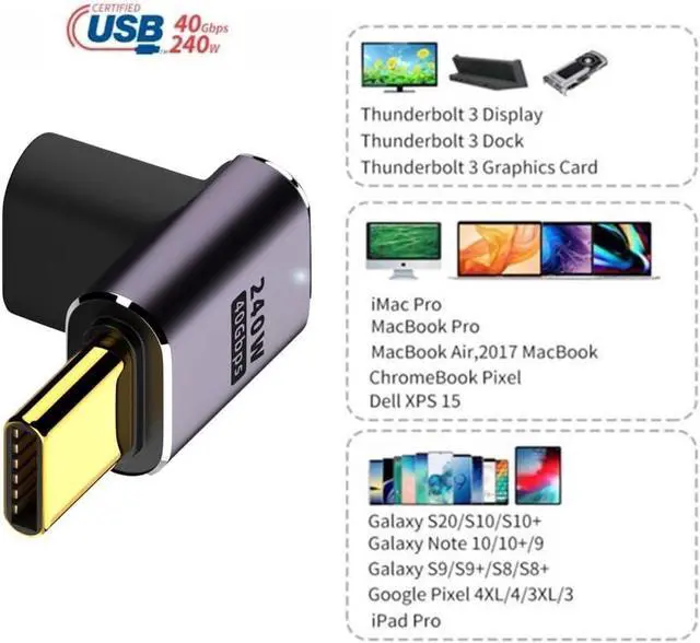 Reversible plug orientation Cable direction. Support 40Gbps data transfer rating.