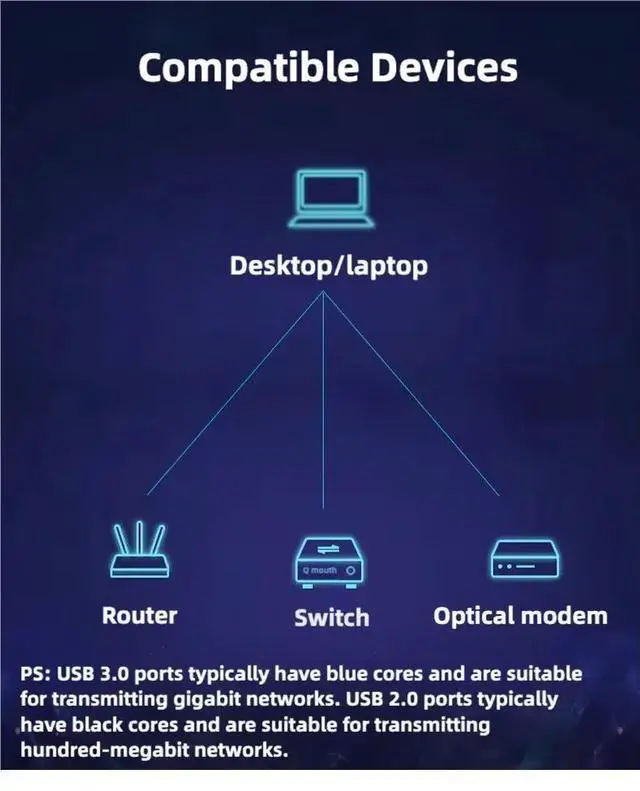 Giga-bit High SpeedUSB A to Ethernet cables can achieve data transfer speeds of up to 1000Mbps and are compatible with 100Mbps/10Mbps networks