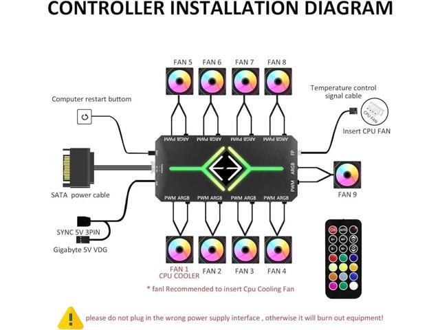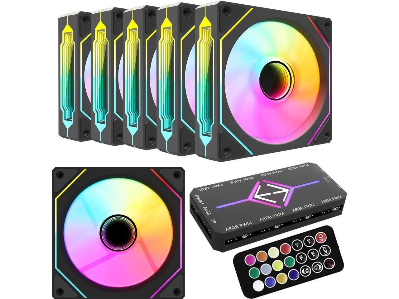 RGB Fans:6 pack 120mm PWM ARGB Case Fan with Fan Hub and Remote,Speed Control,PWM Control Fan for Computer Case and Liquid Cooling System