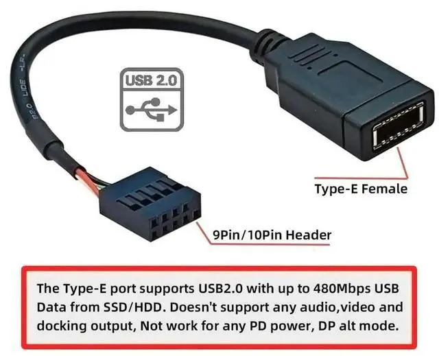 2) The Type-E port supports USB2.0 with up to 480Mbps USB Data from SSD/HDD.