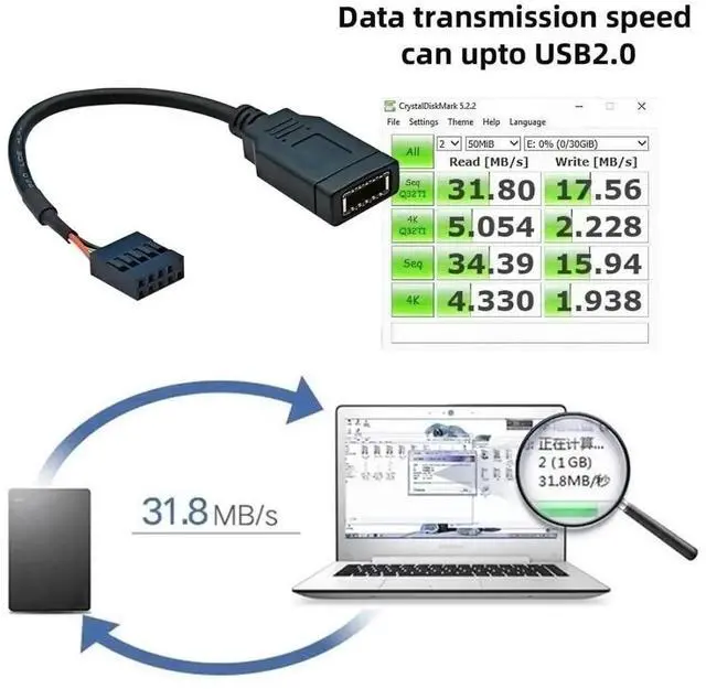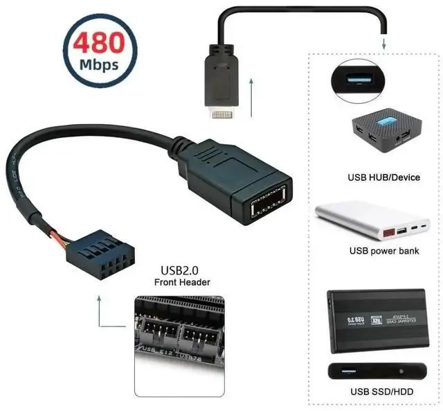 4) The compact adapter can be inserted directly and requires no additional attachments.Converter plug-in for the mainboard, Fits into any USB 2.0 header.