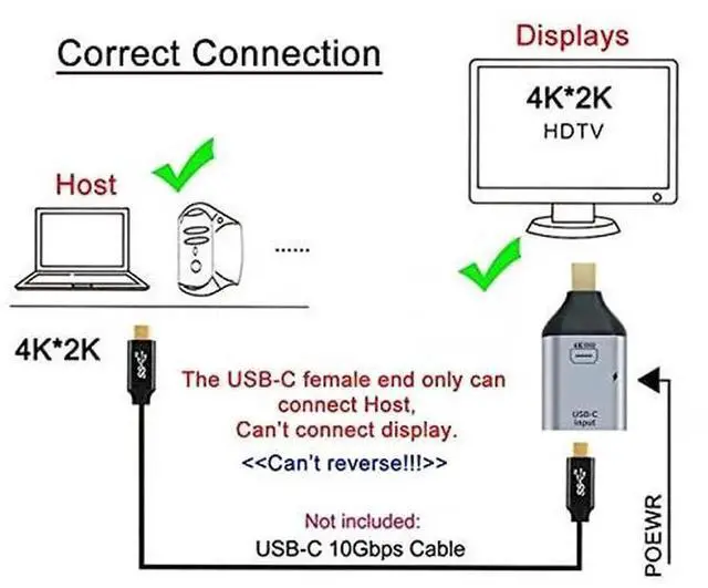 USB-C Type C Female Source to Mini Displayport Sink HDTV & PD Power Adapter 4K 60hz 1080p for Tablet & Phone & Laptop