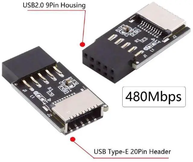 USB 3.1 Front Panel Socket Key-A Type-E to USB 2.0 9Pin 10Pin Mainboard Header Male Extension Adapter