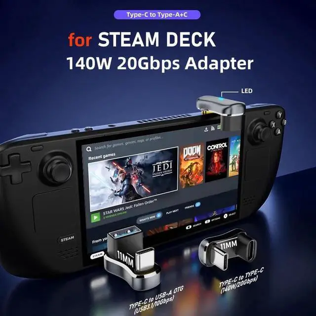 USB3.0 Type C Male to Female & OTG Power Data Adapter Opposite U Shape Back Angled Compatible with Steam Deck