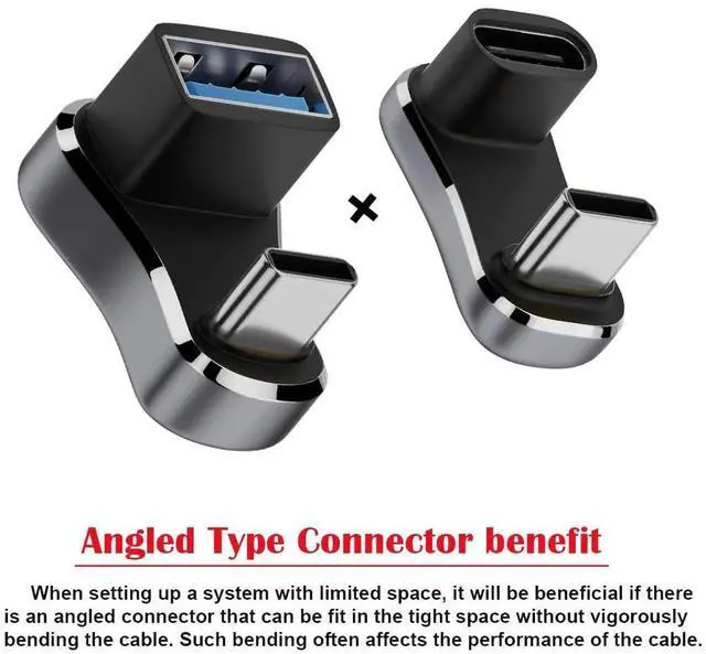 The angled type Allowing you to connect it to a female port, even if space around the port is limited.