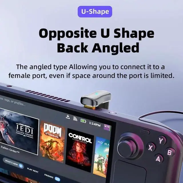 Compatible with Steam Deck Phone Laptop,Opposite U Shape Back Angled, Connector distance 11mm.