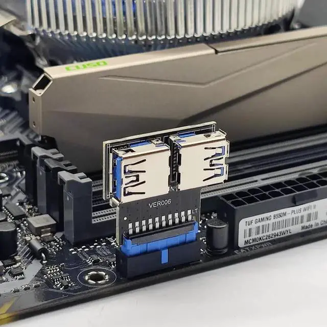 Dual USB 3.0 A Type Female to Motherboard 20/19 Pin Box Header Slot Adapter 5Gbps PCBA