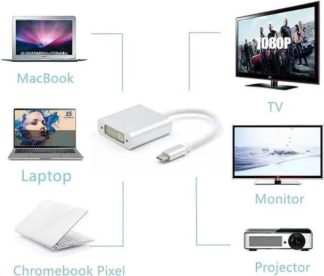 Compatible with digital DVI-enabled TVs/Monitors/Projectors for both video and audio transfer