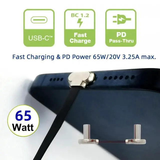 Function: Fast Charging 65W/ 3.25A and Data Transmission USB 2.0 /480Mbps.