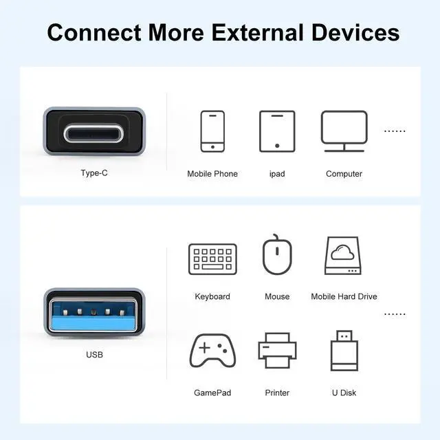 Seminer 90 Degree USB C to USB 3.1 OTG Adapter (2 Pack), Right Angled USBC Type C Male to USB Female Adapter, 10G Data Transfer for Smartphone,Tablet, Laptop