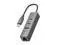 This hub is designed for modern laptops, integrating a Gigabit Ethernet port, two USB-C ports, and one USB-A port to solve connectivity issues, allowing efficient access to network, peripherals, and storage devices simultaneously.