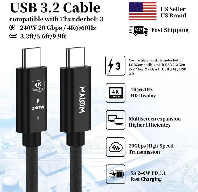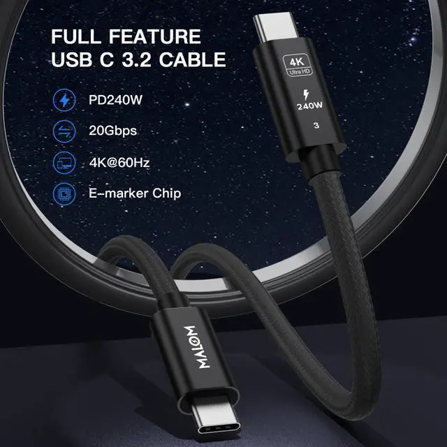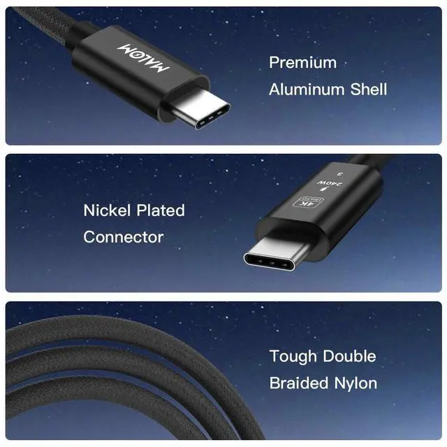 MALOM USB 3.2 Gen 2, 240W, USB C to USB C Cable, Fast Charging for MacBook Pro/Air,iPad Pro, Phone 17/16/15 Pro Max,Galaxy S24/S23, Steam Deck, 20Gbps Data Transfer,4K Video Output
