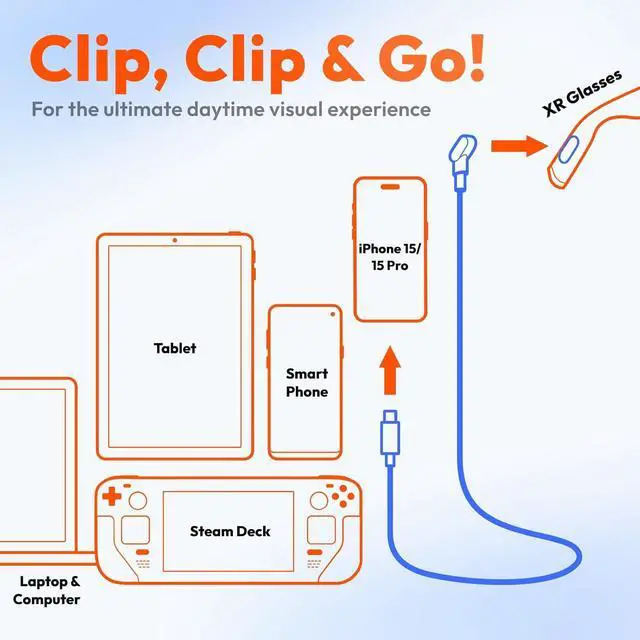This USB-C to Magnetic Connector Cable is great for having a little extra leeway to connect your VITURE XR Glasses to compatible USB-C devices. With this cable, it's easy to connect, throw your device in a backpack, and keep moving without interrupting your favorite show or logging out of the game you just can't put down right now.