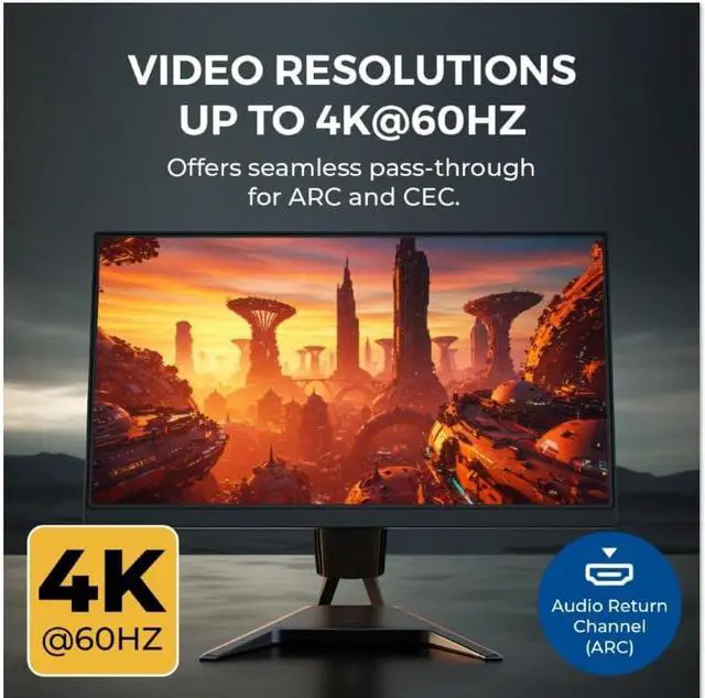 FULL SUPPORT: CEC/EDID/HDCP2.2/HDR, 1536KHz Sample Rates, 4K@60Hz, 32 Uncompressed Audio and Video Sync, ARC, Chroma Subsampling 4:4:4/4:2:2/4:2:0. 4K 60Hz 8bit 4:4:4, 4K 30Hz 10bit 4:4:4, 1080P 16bit 4:4:4