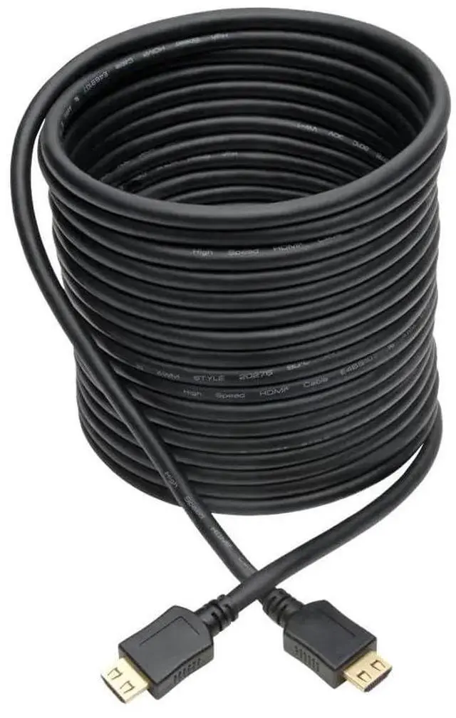 Tripp Lite Eaton P568 025 BK GRP high speed HDMI cable delivers reliable signal transmission for home theater gaming and professional AV installations The 25 ft black cable features corrosion resistant gold plated 19 pin type A connectors with ergonomic gripping design for easy insertion and removal EMI RFI shielding maintains pristine video and audio quality while ensuring RoHS and HDCP compliance Supporting full HD 1080p resolution this HDMI cable provides crisp vibrant images and clear stereo sound Perfect for connecting HDTV projectors Blu ray players gaming consoles soundbars TVs and AV receivers The flexible durable PVC jacket resists kinks and tangles while the extra length accommodates large rooms conference halls and custom installations Enhance your home entertainment or commercial AV setup with a premium high speed HDMI cable that offers secure male to male connection robust shielding and gold plated connectors for superior conductivity Trust the Tripp Lite Eaton brand for quality AV cabling solutions Compatible with HDMI interface devices