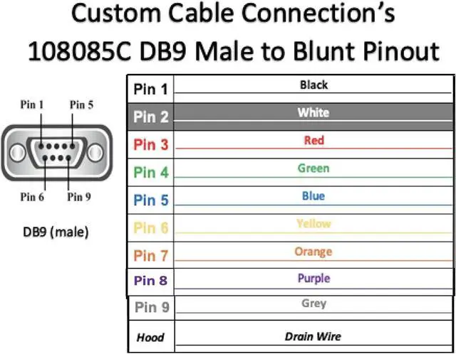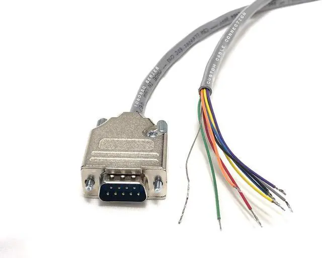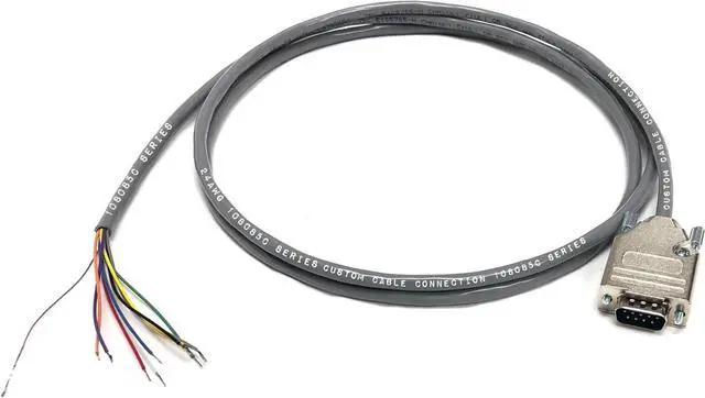 Specifications:DB9 male connector3" Bare end with stripped and tinned wiresAll pins are wired Designed to prevent EMI and RFIThumbscrews provide quick and easy connection24 AWG RS-232 Serial Breakout Grey Cable