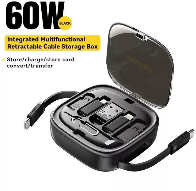 Comes with a compact storage box holder to keep everything organized. Store the main cable and all adapters in one place - no more losing tiny adapters. Perfect for travel, office, and everyday carry.