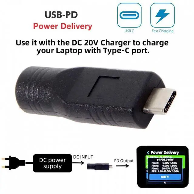 Use it with the DC 20V Charger to charge your Laptop with Type-C port.