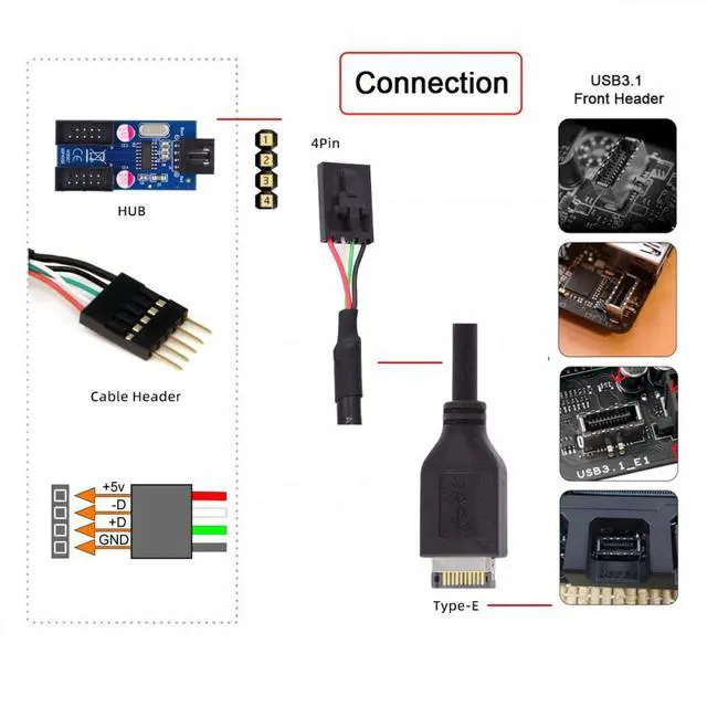 It can extend your type-E connector to 4pin connector.You can convert the 20pin Type-E motherboard internal port to usb 2.04pin device. Used to connect USB cables or adapter in tight fit applications.