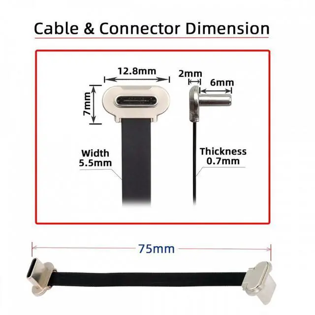 With Different direction angled connector at both end, This Angled Type-Cable Allowing you to connect the cable to a female port, even if space around the port is limited.