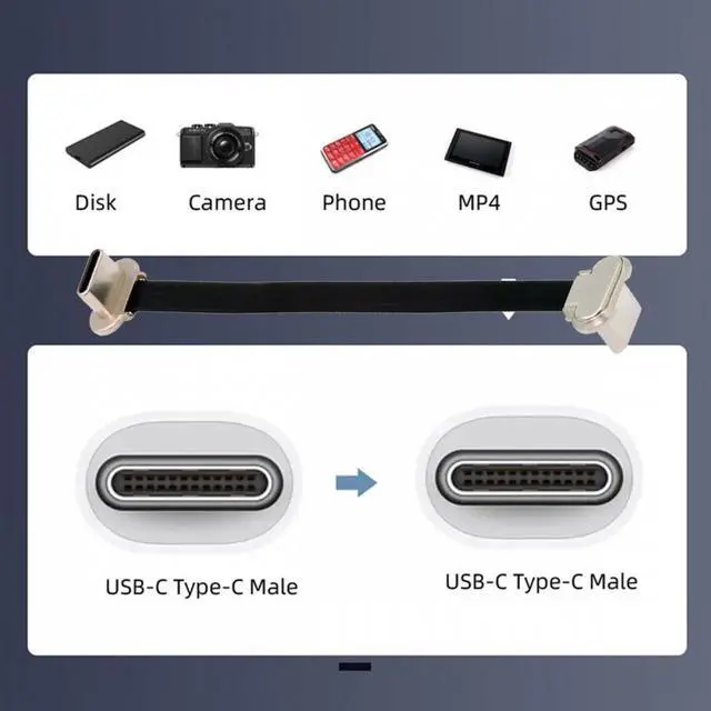 Angled USB-C Type-C to USB-C Ultra Slim Flat Power USB2.0 Data Cable 65W Fast Charge for Laptop Tablet Phone