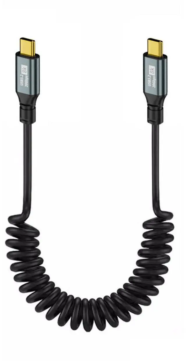 Stretch Coiled USB-C USB4 Cable 20Gbps 100W 8K for Gaming Keyboard Mouse Type-C Male to Male Cable