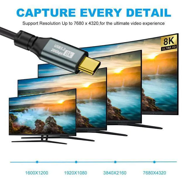 This USB4 Cable enables to connect from your USB4 or thunderbolt3/4 Port equipped Devices to your USB-C Monitors, It supports Single 8K@60hz, 5K@60Hz or 4K@60Hz max. video Resolution in your external displays.(please make sure your monitor's Type-c port support DP Alternate Mode for Video.)