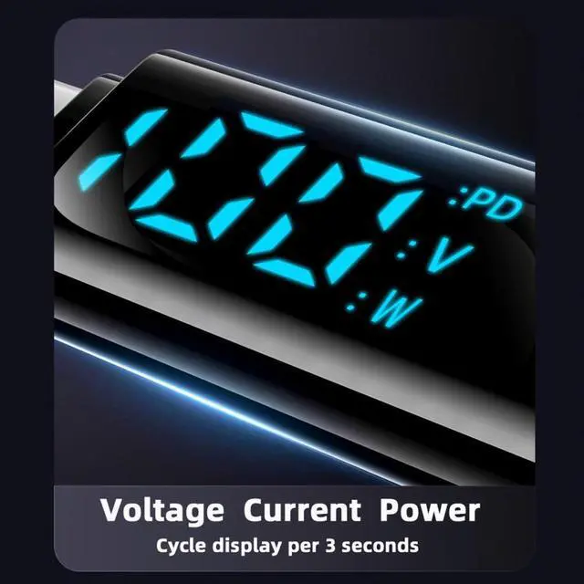 LED light making charging visible; The adapter with an LED digital display screen that can display charging voltage, current and power in real time. It has a visual design that allows you to know the charging speed in real time and monitor device status.