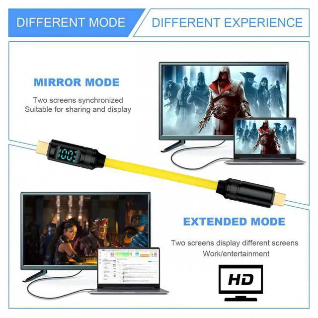 • Smart LED Display USB-C USB4 Cable 20Gbps 100W 8K for Laptop Disk Phone Type-C Male to Male Cable Power and Data