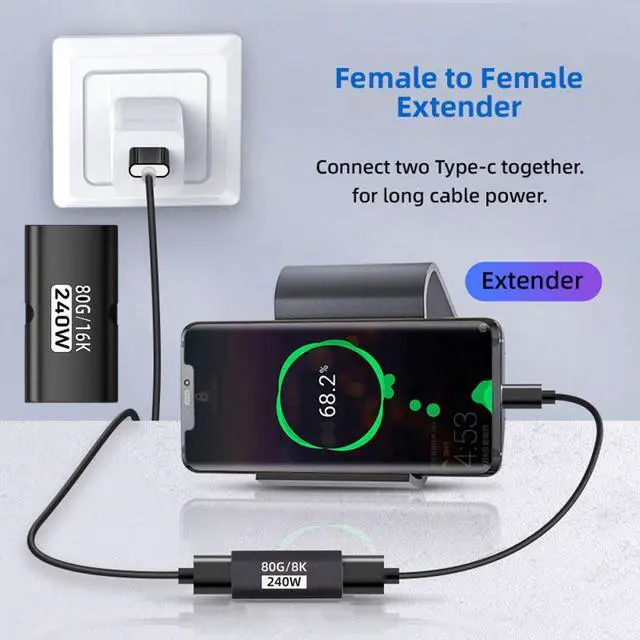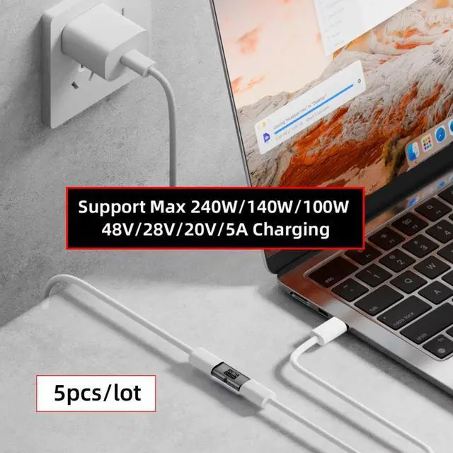 This USB5.0 adapter can support Max 240W/140W/100W 28V/20V/5A Charging, It will supply power when your USB-C device is in use. Reversible Design for Type-C connector,Reversible plug orientation Cable direction.