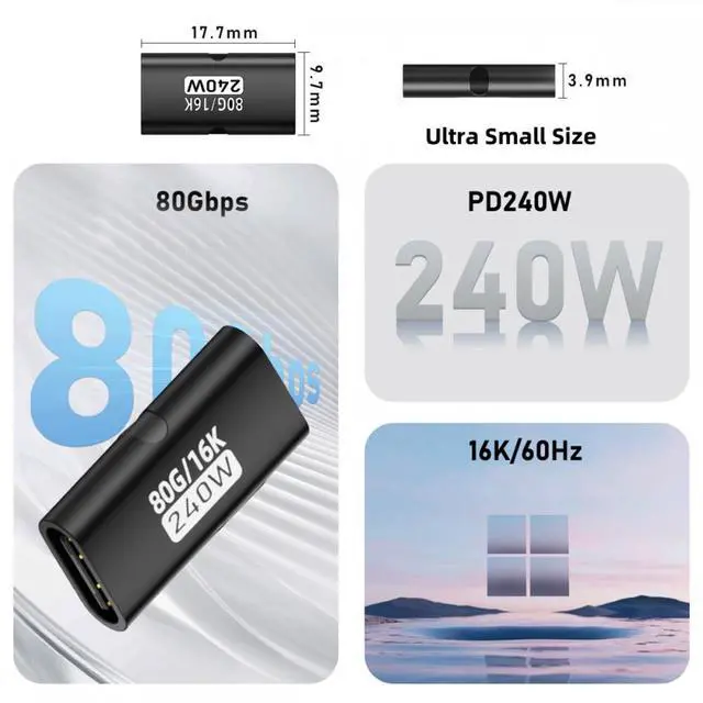 5pcs/lot USB5.0 80Gbps Female to Female Extension Adapter with 240W 16K 8K 5K Compatible with USB4.0 Thunderbolt3/4/5