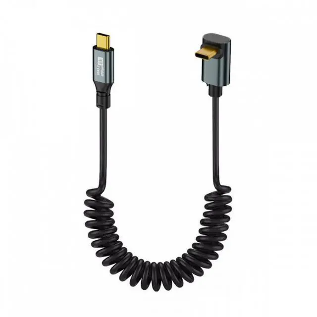 Stretch Coiled USB-C USB4 Cable 20Gbps 100W 8K Type-C Up Angled Male to Male Cable Power and Data for Laptop Keyboard Tablet