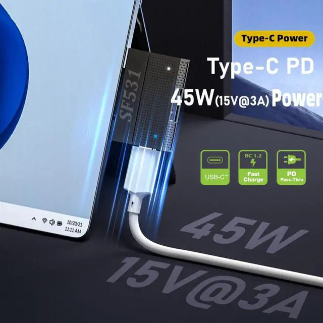Build-in the PD Emulator Trigger at Type-C female end and support 45W(15V3A) PD Power.