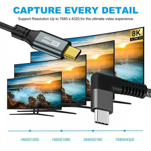 This USB4 Cable enables to connect from your USB4 or thunderbolt3/4 Port equipped Devices to your USB-C Monitors, It supports Single 8K@60hz, 5K@60Hz or 4K@60Hz max. video Resolution in your external displays.(please make sure your monitor's Type-c port support DP Alternate Mode for Video.)