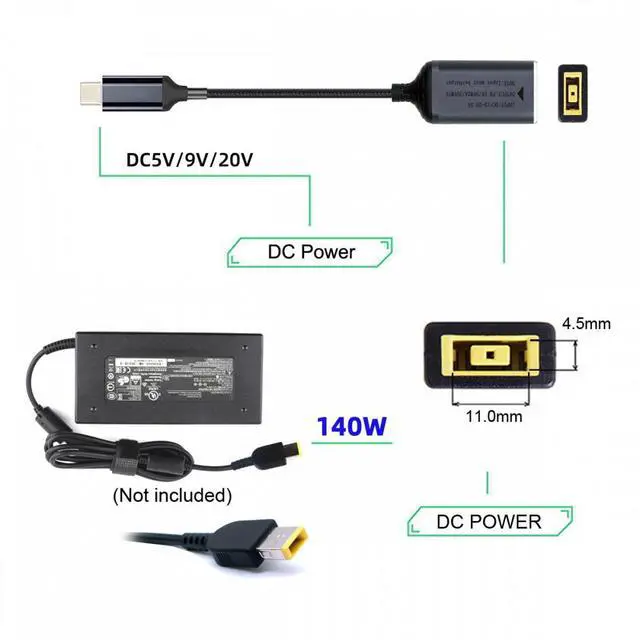 Rectangle Jack Thinkpad X1 Input to USB-C Type-C Power 140W Charge Cable for Laptop Phone PD9V 5V 20V 7A