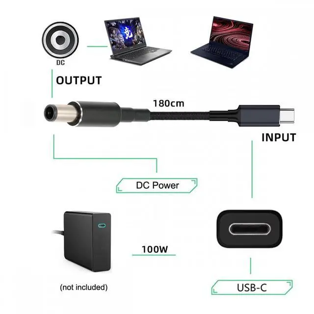 100W Type-C USB-C Input to 20V DC 7.4*5.0mm Output Power 20V 5A 65W PD Charge Cable compatible with HP-Laptop