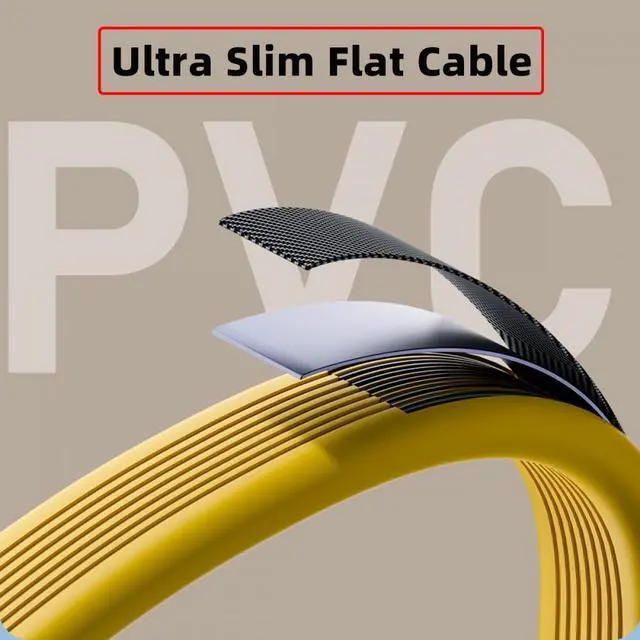 The internal use of copper lines instead of traditional copper lines can save space, facilitate bending and use, and is suitable for overall flattening. Then add an integrated PVC quilt around the wire, which makes the cable ultra flexible and durable, the cable is lightweighted, small size, perfect for your daily use.