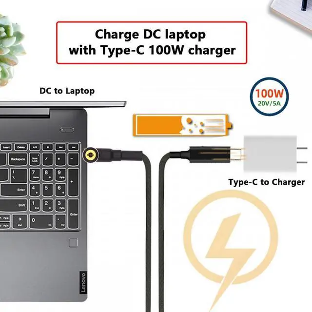 Use it with the 100W/65W Type-C Charger to charge your Laptop with DC 5.5mm port.