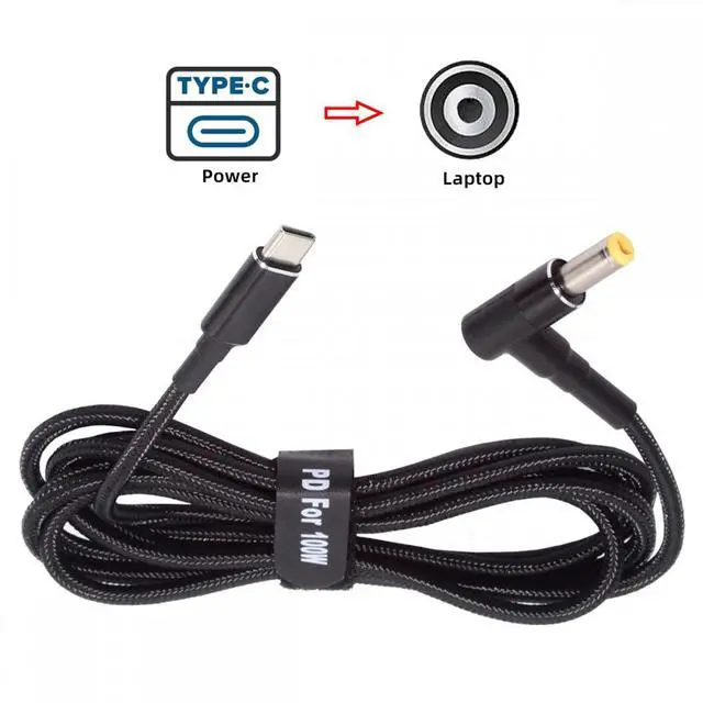Type-C USB-C Input to 20V DC 5.5*2.5mm Output Power 100W 5A 65W PD Charge Cable for Laptop