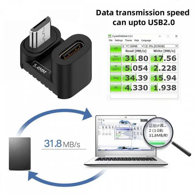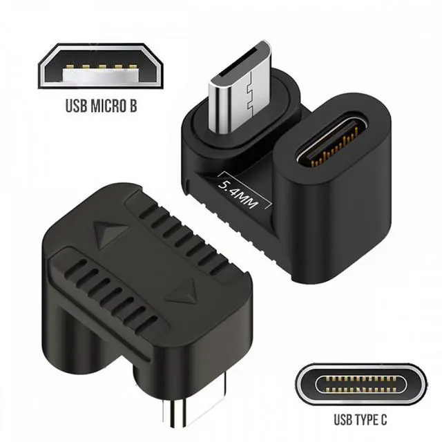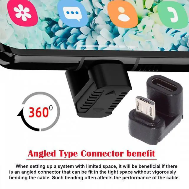 USB-C USB2.0 Type-C Female to Micro USB Male Power Data Adapter 360 Degree Opposite Down Back Angled