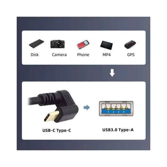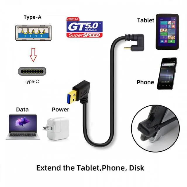 • USB3.0 Type-A to Type-C USB-C Male to Male Power Data Cable 5Gbps USB-C Opposite U Shape Back Angled