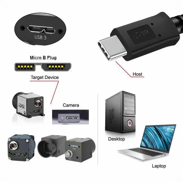 • 5Gbps USB-C Type-C Host to Micro USB3.0 Screw Mount 90 Degree Angled for Industrial Camera Storage,Length:100cm.