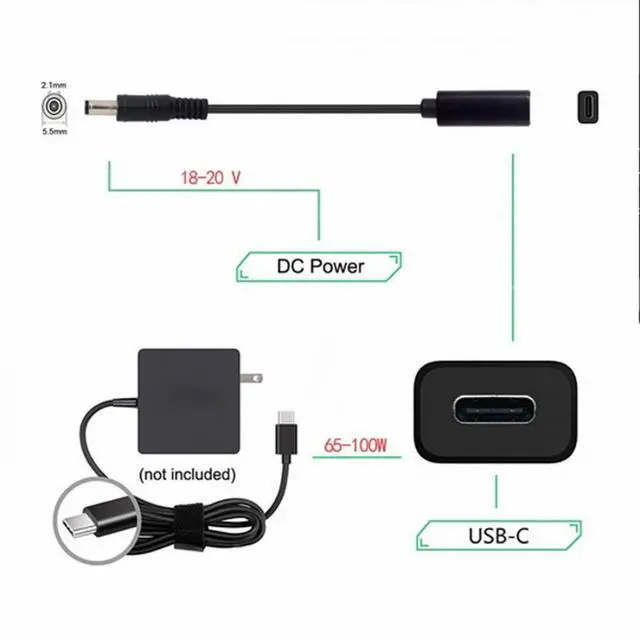 Type-C USB-C Female Input to DC 5.5*2.1mm Power PD Charge Cable fit for Laptop Laptop 18-20V