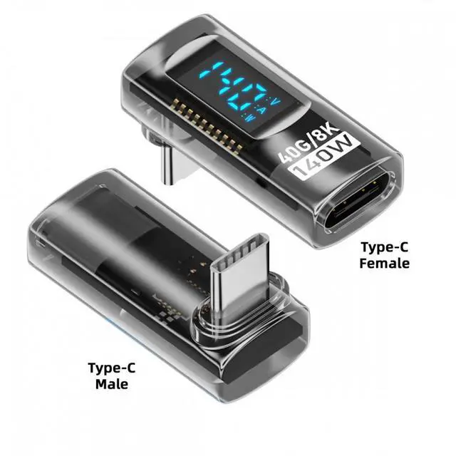Type-C Smart LED Display USB-C Male to Female Extension Adapter USB4.0 40Gbps 140W Up Down Angled 90 Degree Current Voltage Monitoring