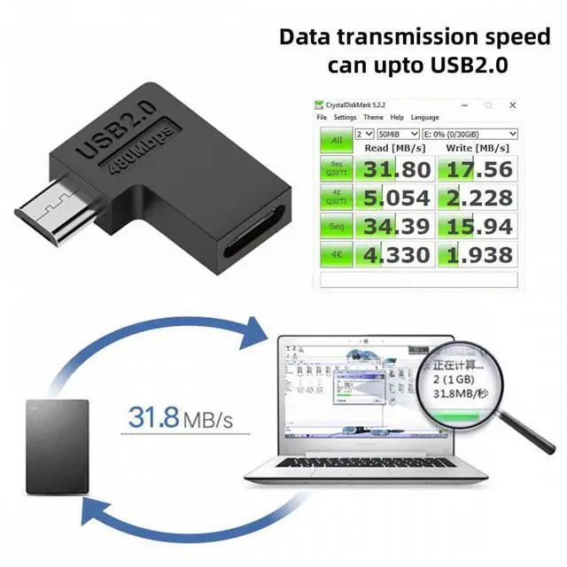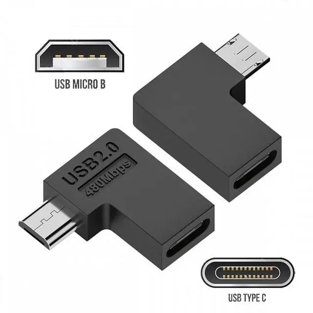 USB-C USB2.0 Type-C Female to Micro USB Male Power Data Adapter 90 Degree Right Angled Type